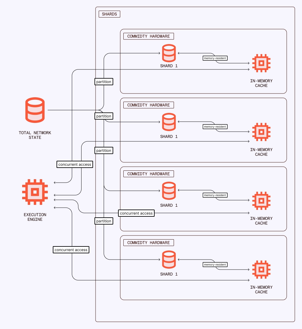 By sharding the data across a cluster of commodity hardware, the system eliminates disk-access latency and provides the speed of in-memory computing. This sharded, memory-first approach ensures the platform remains performant on affordable hardware, preventing the centralization risks associated with high-cost specialized servers.